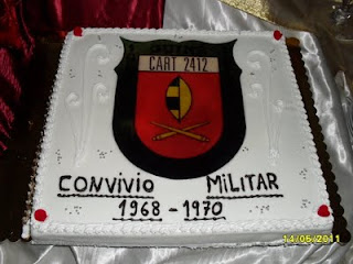 Só foi pena no cortar do bolo, não ter sido anunciado com antecedência para o fotografo não ser apanhado de surpresa e fotografa-lo já bastante mutilado (lambareiros d'um raio, nem esperam) mas ainda dá para ver o guião da Cª bem feitinho.